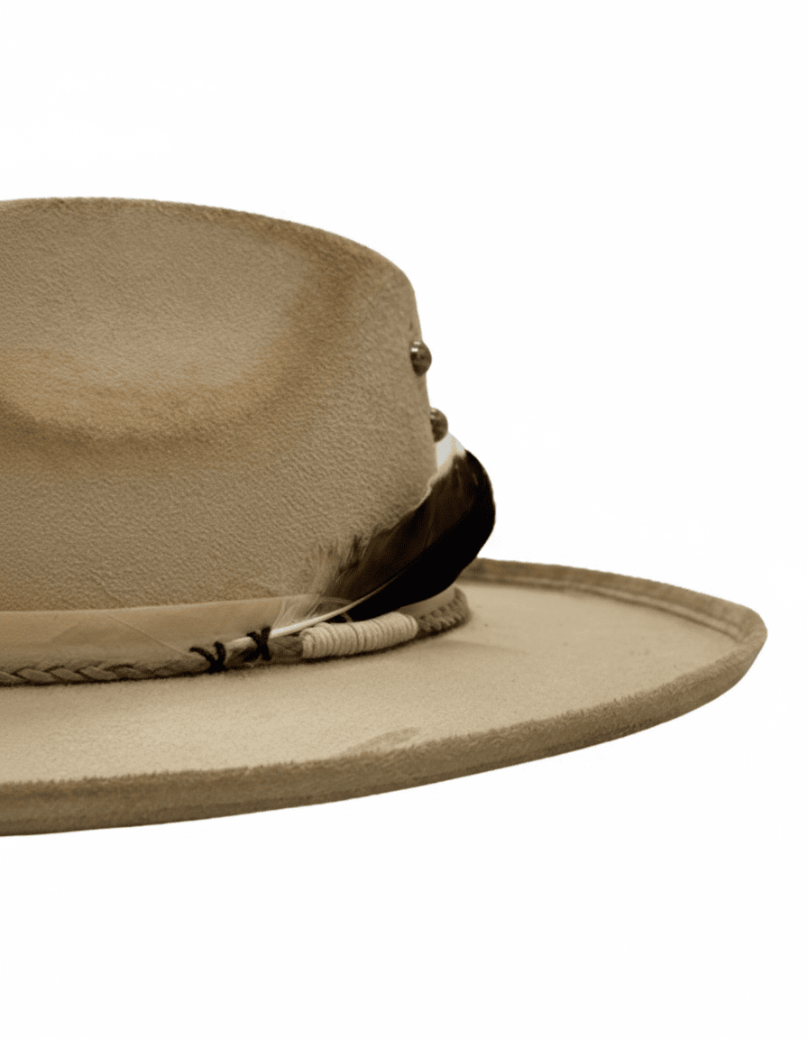 Un clásico en tono arena con detalles artesanales en trenza de piel y pluma natural. Su diseño limpio y atemporal refleja la esencia de Clandestino: piezas auténticas que evocan libertad, carácter y estilo propio.